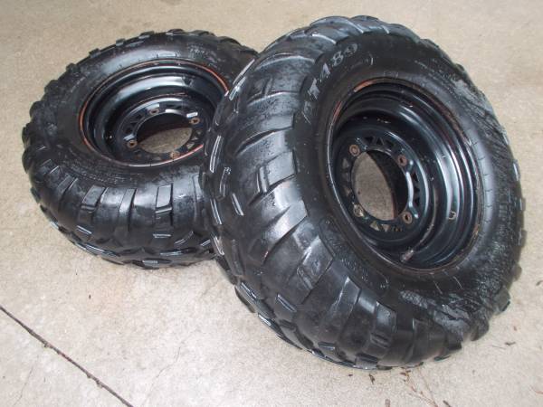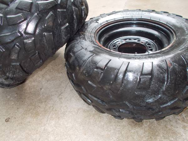 Polaris Sportsman 800 Rear 4/156 Rims Wheels 25X11-12 Tires. 25% Tread. Some cracking but hold air.