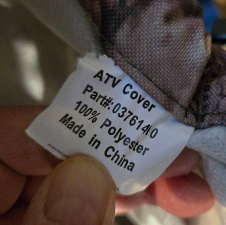 New, never used. Rugged UV and abrasion-resistant 600-denier polyester. Soft cotton lining protects ATV finish. Double layer of fabric over the handlebars. Topside fuel-tank access. Water-resistant zip door features a vent to reduce condensation inside cover. Elastic bottom hem and polyester straps with quick-release buckles.