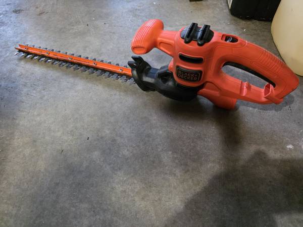 Corded power hedge trimmer. Very lightly used and works great. Black and Decker brand