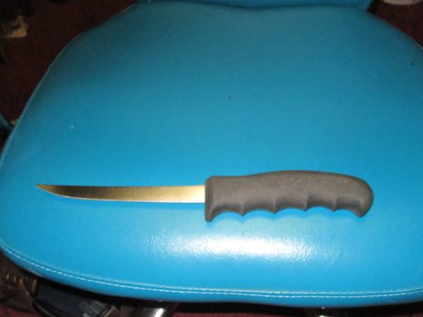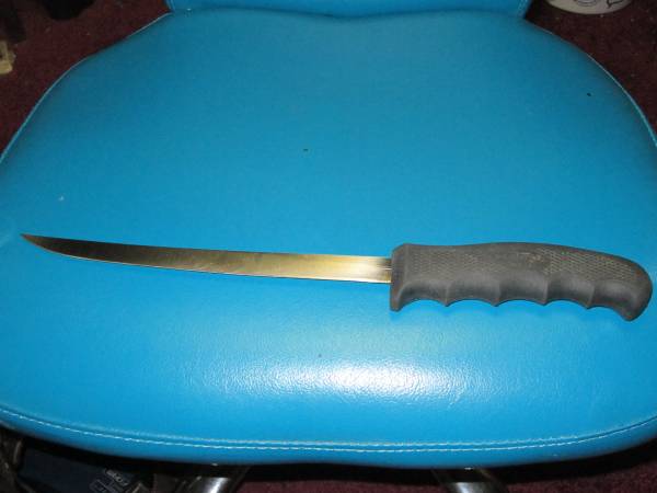 Deluxe fillet knife with a great rubber handle that is easy to hold on to
