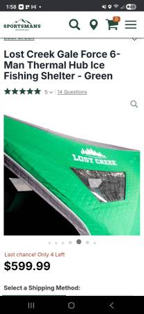Lost Creek 6 man ice hub. Used 2 times. No bag