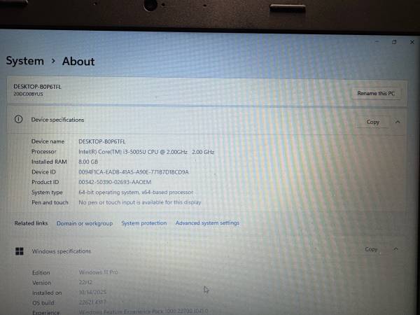 Windows 11 Pro Intel core i3-5005U @ 2.00ghz 8.00gb memory 256gb SSD Power supply included
