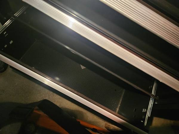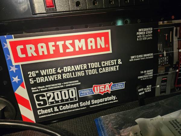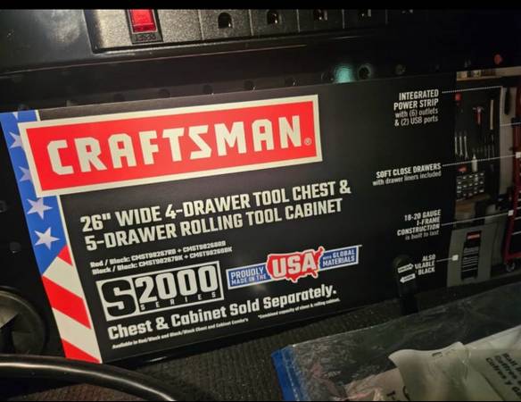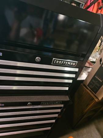 Craftsman Black 2 Piece Rolling Tool Chest 9 Drawer+Top Storage Never Used Bought New Measures:: Bottom Chest 38” Tall Base on Wheels 27” Wide 18” Deep Top Chest 24.5” Tall 26” Wide 16” Deep...