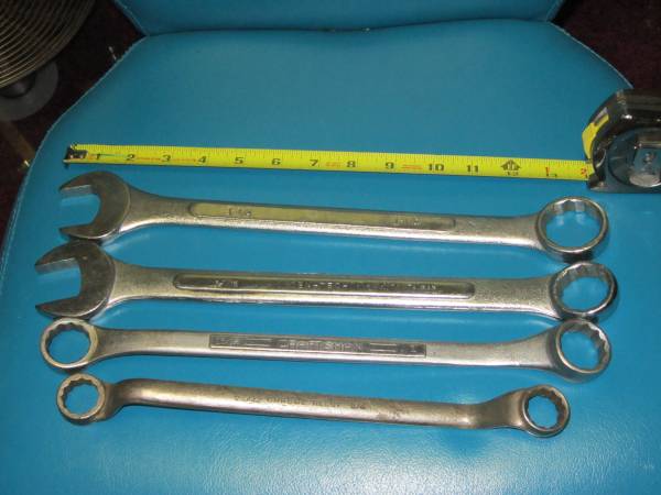4 Large Wrenches 15/16" and 1" craftsman double box end 25/32" and 3/4" double box end high offset wrench 1-1/4" and 1-1/4" combo open end and box end wrench 1-1/6" and 1-1/6" combo open end and box...