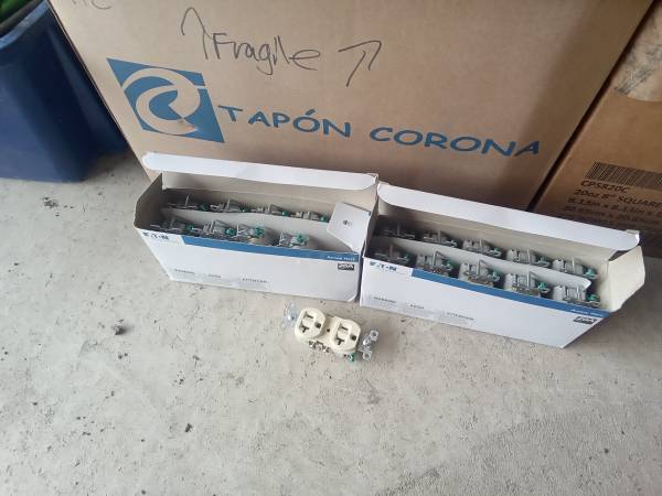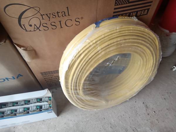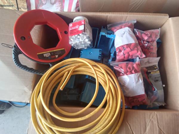 250ft of 12/2 electric wire brand new, 20, 20a outlets, box of outlet boxes, 100s of wire nuts, puller etc.