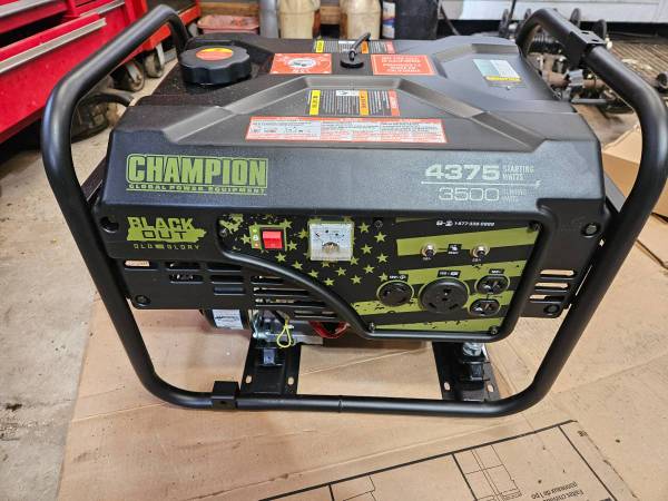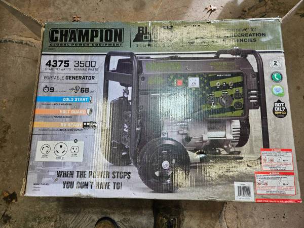 I have a brand new out of the box 4375 watt starting, 3500 watt running generator. I took it out of the box to take pictures of it, it's never had fuel or oil put in it. Comes with a box of accessories which includes a handle and some wheels, as well as the owner's manual.