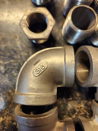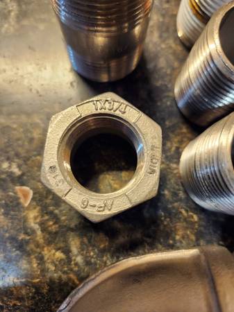 1.5" nipples =5 2" nipples = 1 1x3/4 reducer bushing = 1 90 degree elbow = 4 leftover from a project 715-four98-783five all new never used all 316 stainless steel