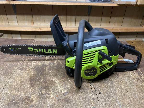 Poulan model PL3314 chainsaw, purchased about 5 years ago. Starts, runs, and cuts well. 14" bar and chain, will accept 16" and 18" bars. Has a safety chain-brake in the event of kickback. This saw has not been used very much and has a lot of life left in the chain. I have 2 other saws and just don't need this one anymore.