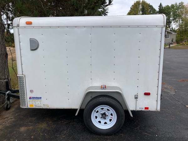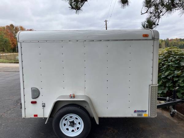 I have for sale, a 2010 United 5 x 8 enclosed trailer that is in excellent condition. Stored inside most of its life. Has new wheels and tires, air vents, the lights work, has no leaks, the wheel bearings have been recently greased and has tongue jack with wheel. The interior is in great shape. Comes with original Certificate of Origin.