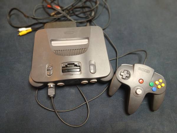 Nintendo64 Console with cables, cords and original jumper pack.