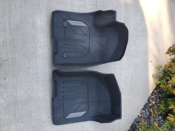 OEM floor mats for Chevy or GMC 2500 or 3500 trucks. They fit years 2021 through 2025 and possibly more. These mats are far superior to any other brand and they are in excellent condition.