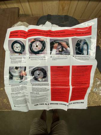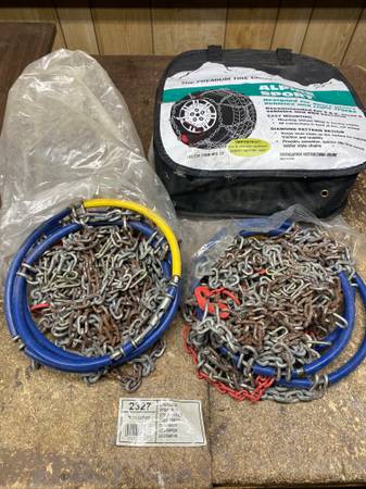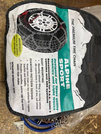 Set of two tire chains in carrying case for lights trucks. Installation instruction sheet included. Used but in good shape, work great, I just don't need them anymore. Easy to install and fits the...
