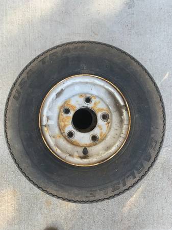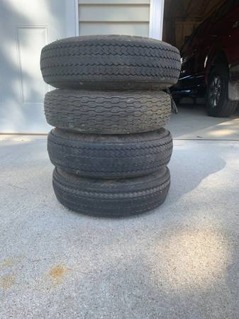 set of 4 - 4.80 x 8 tires & rims 5 hole stud pattern over 1/2 tread left